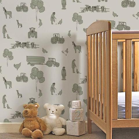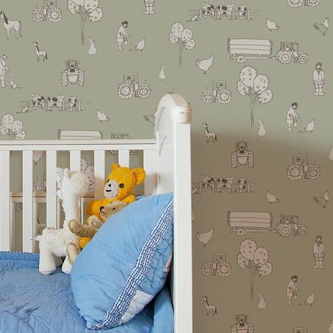 Katie Bourne Wallpaper | Cluck a Doodle Farm Cream & Green