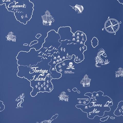 Hibou Home Wallpaper | Pirates Seas in White on Marine Blue