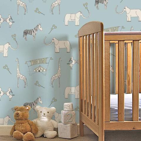 Katie Bourne Wallpaper | Merry Go Circus Light Blue & Cream