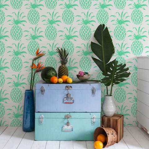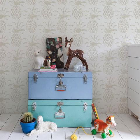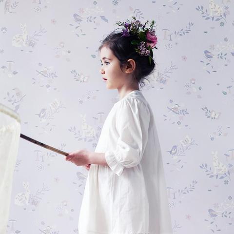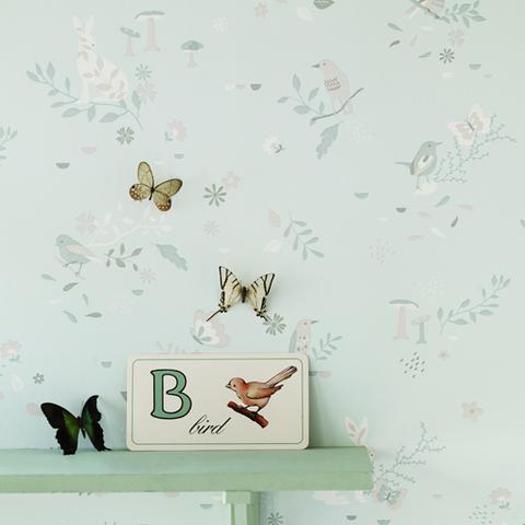 Hibou Home Wallpaper | Enchanted Wood in White On Duck Egg Blue