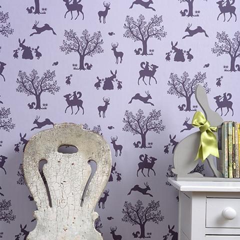 Hibou Home Wallpaper | Enchanted Wood Aubergine on Soft Lilac