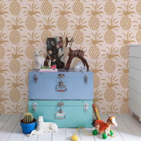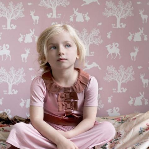 Hibou Home Wallpaper | Enchanted Wood in White on Dusky Peony Pink