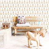 Indian Tipi Wallpaper by Studio Ditte ON SALE. This delicious creme coloured wallpaper has an atmospheric vintage look with a fresh graphic print.